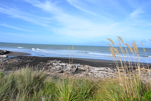 Gegen 17 Uhr erreichten wir den anderen Parkplatz und tatsächlich wartete der Rest unserer Gefährten dort seit zwei Stunden auf uns. Es wurde schon langsam dunkel und sie fuhren uns zurück zu unseren Autos, wo zehn Minuten später auch die zwei Surfer-Jungs wieder ankamen. Alle zusammen kochten wir auf dem Parkplatz einen Tee, setzten uns bei Kerzenlicht auf die Straße und ließen den wundervollen Tag mit einem Schwarztee mit Milch und Zucker ausklingen. 🙂 Jeder von uns hatte noch andere Ziele an diesem Abend und die meisten noch einen weiten Weg vor sich. Die zwei Surferjungs wollten noch vier Stunden nach Wellington fahren, Julien schwankte zwischen dem 3 Stunden westlich gelegenen Ragland, dem eine Stunde entfernten Taupo und dem drei Stunden östlich gelegenen Rotorua, Ethan wollte noch eine Nacht auf dem DOC Campingplatz zelten (bei der Kälte!!! brrr), Olivier war alles egal, Hauptsache es habe eine heiße Dusche und ich wollte für mich und Menina einen schönen (und etwas wärmeren) Platz an einem einsamen Strand finden. Immerhin war es meine letzte Nacht mit Menina auf Reisen. Also verabschiedeten wir uns und stiegen in die Autos. Ich drehte den Zündschlüssel heraus – und es passierte nichts! Ich hatte das Licht angelassen!!! Schnell sprang ich wieder aus dem Auto und klopfte an die Scheiben von Olivier und Julien. Olivier hatte zum Glück ein Starterkabel und gemeinsam schafften wir es, Menina neben sein Auto zu rollen. Sie sprang Gott sei Dank sofort an. Nun musste ich mindestens zwei Stunden fahren, und ei Batterie wieder zu laden. Der nächste Strand war aber sowieso 3 Stunden entfernt und so fuhr ich gegen 19 Uhr los, Ziel Wanganui. Meine Camping-App sagte, hier gäbe es viele Freedom Camping Plätze aber als ich dort gegen 21 Uhr ankam, war keiner davon wirklich brauchbar. Einige lagen in furchterregenden Industrievierteln, an anderen waren die öffentlichen Toiletten über Nacht verschlossen. An keinem standen andere Camper. Ich suchte weiter, aber der nächste Platz war 40 Minuten nördlich – also in der falschen Richtung für meine Weiterfahrt nach Wellington. Ich fuhr einen Holidaypark in der Nähe an. 32 Dollar wollten sie dort für einen Stellplatz über die Nacht, die Toiletten waren alt und für die Duschen musste man extra bezahlen. Also fuhr ich wieder und beschloss nach einigem Hin- und Herüberlegen, die 40 Minuten nach Norden zu fahren. Ich kam um 22:00 auf dem Wanuii-Beach Campsite an und habe es nicht bereut. Direkt am Strand war eine riesige Wiese und es hätten hunderte von Campervans hier stehen können – es standen aber nur fünf dort. Ich suchte mir mit Menina einen windgeschützten Platz mit Blich auf das Meer und begann, mir mein Abendessen zu kochen. Ich hatte nicht mehr viel also kochte ich Kartoffeln und Möhren und aß Thunfisch aus der Dose. Es war kalt und windig und das Kochen brauchte gute zwei Stunden. Müde fiel ich ins Bett und wachte am nächsten Morgen mit Blick auf das Meer auf. Es war genau das, was ich für meinen letzten Tag mit Menina gesucht hatte und ich blieb bis Mittag, machte meine Eierkuchen, räumte Menina auf und lag lange in meinem Bett und schaute hinaus auf das Meer.